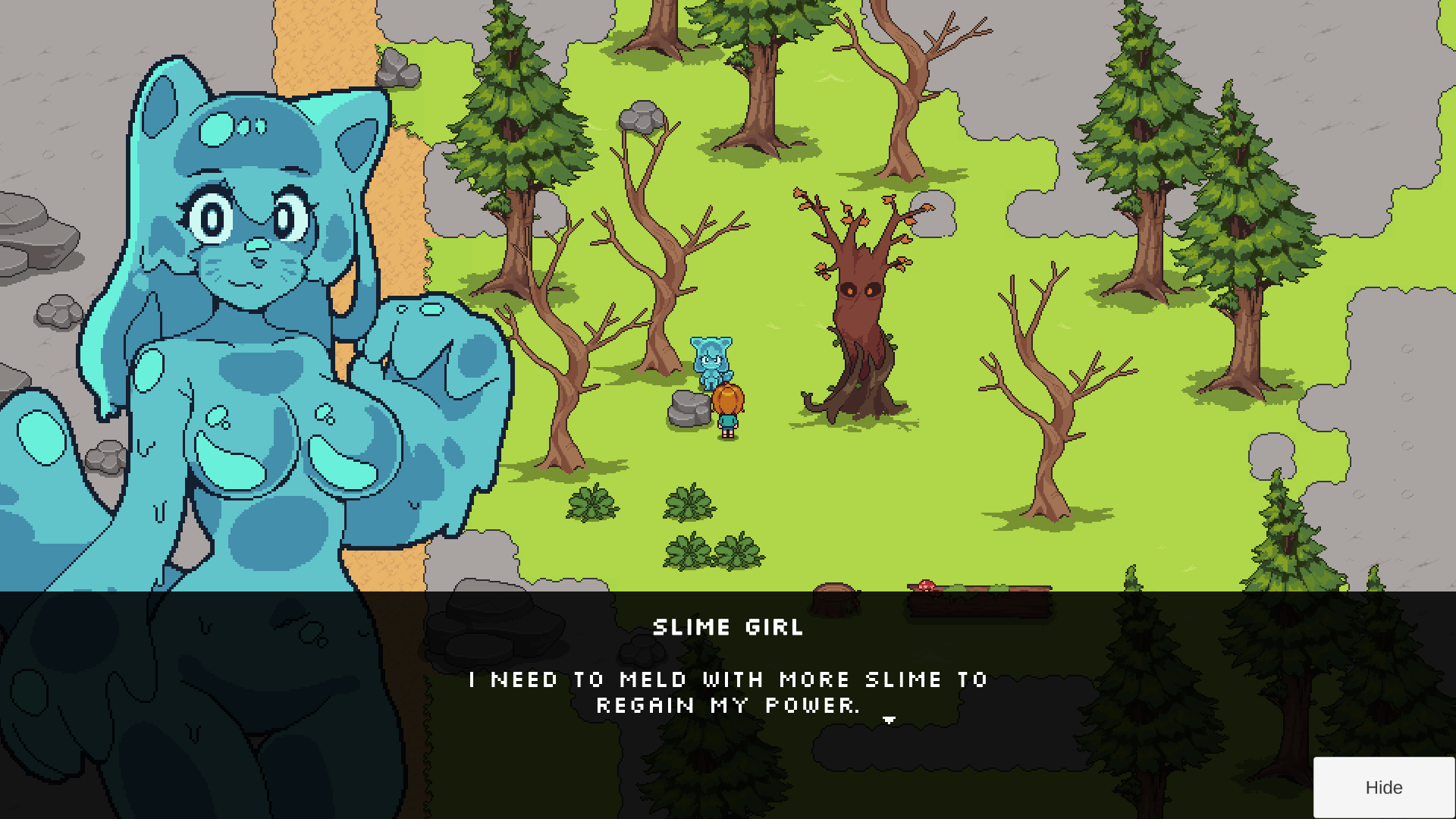 solid foundation but the lack of saving isnt great. personally i would like to see the option to make the player anthropomorphic like the slime girl. one species is fine as long as its an option. the character creator seems simple enough to handle it.